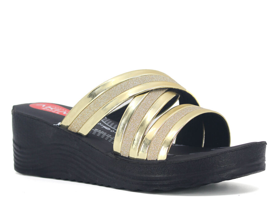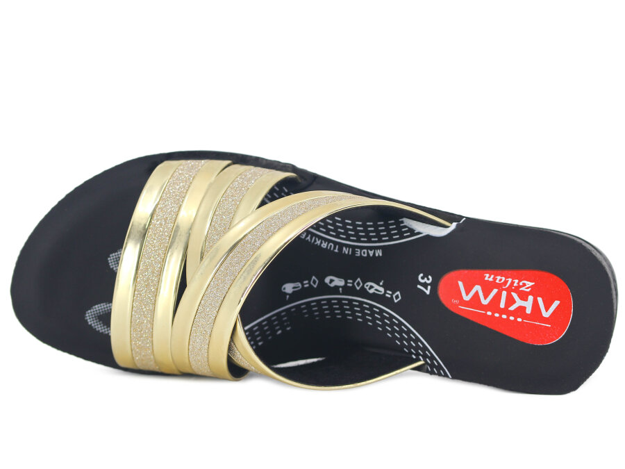 Resimdeki Toptan Akım Zenne 426-35 Zilan(2026) Kutulu Günlük Terlik ürünü Altın Rugan,Siyah Kumlu,Siyah Tekstil,Standart,ствндартный renk olarak gönderilecektir.