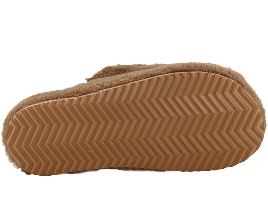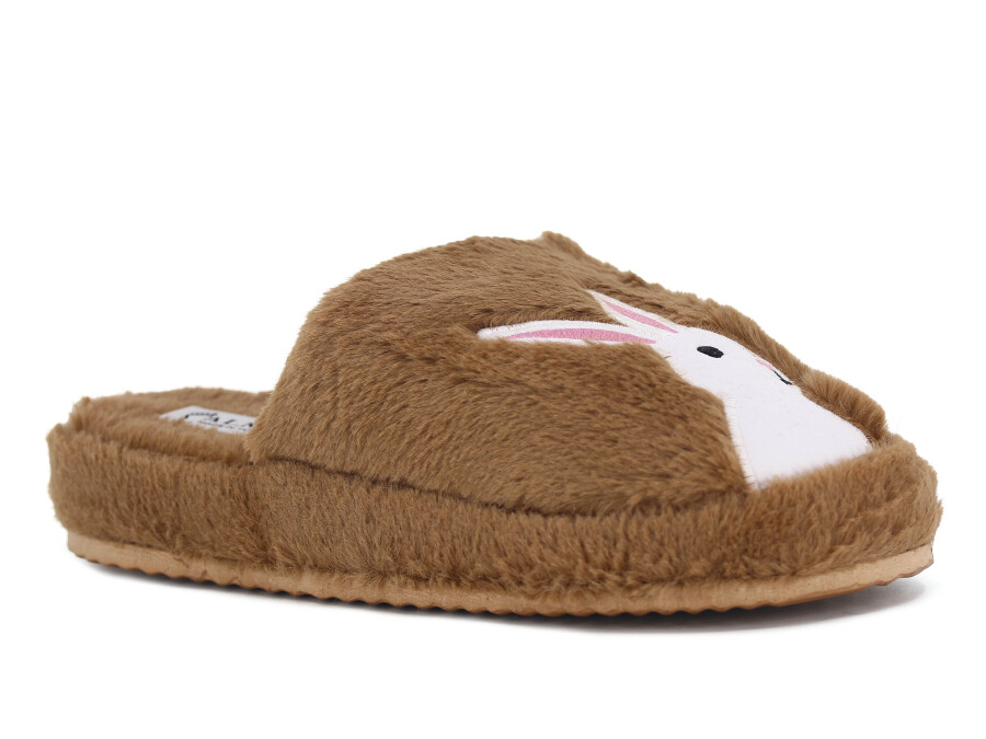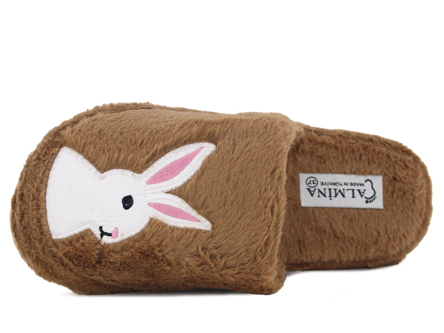 Almina Zenne 2024 Nakışlı Burnu Kapalı Atom Ev Terliği Tavşanlı Kahve