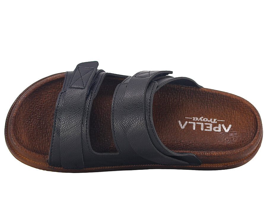 Apella Merdane 960-2 Troya Çift Bant Cırtlı Kutulu Günlük Terlik Siyah