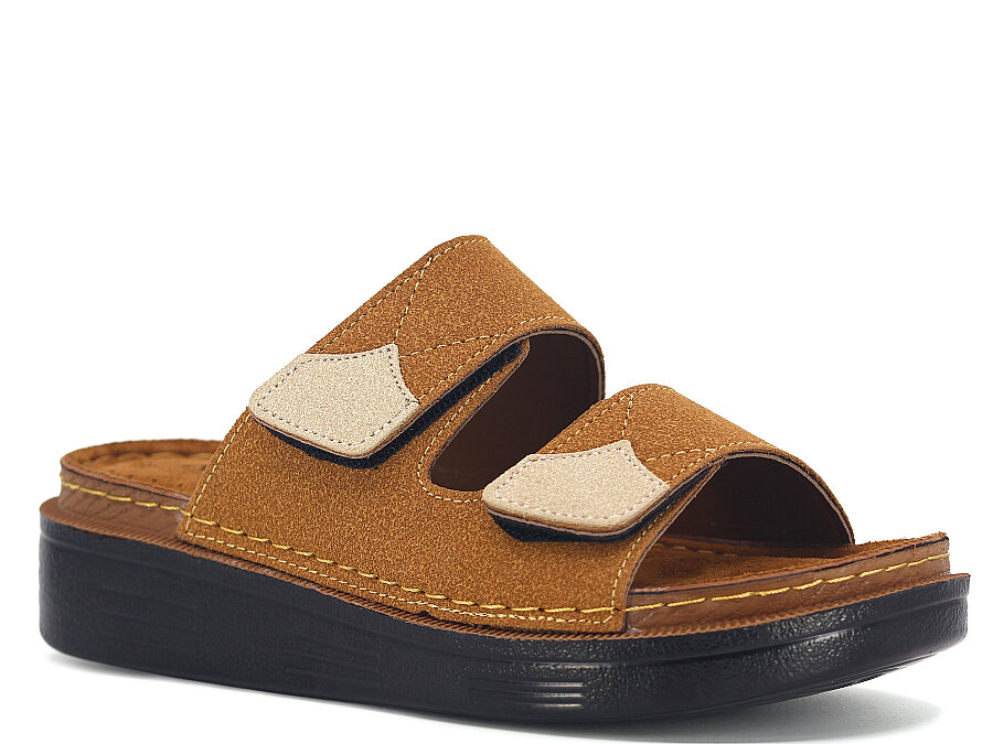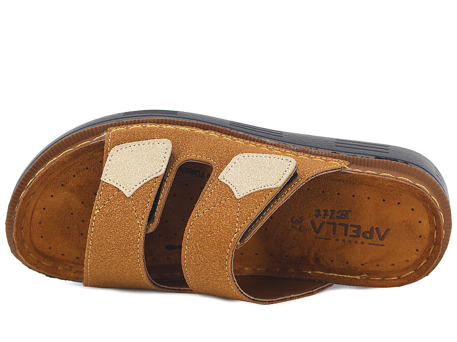 Apella Zenne 480-20 Elit Çift Bantlı Cırtlı Kutulu Günlük Terlik Camel