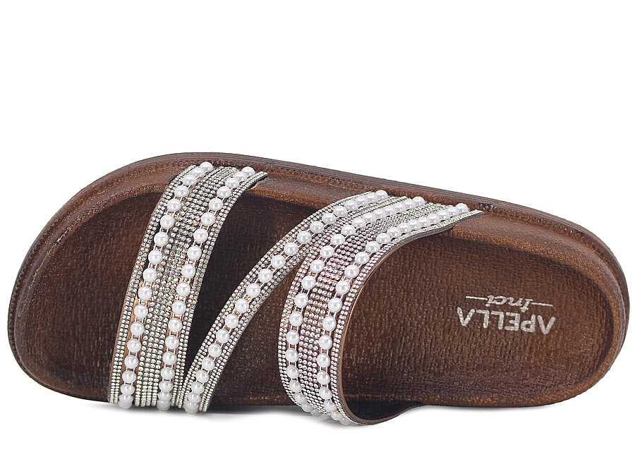 Toptan Apella Zenne 487-3 İnci Bantlı Taşlı Günlük Terlik