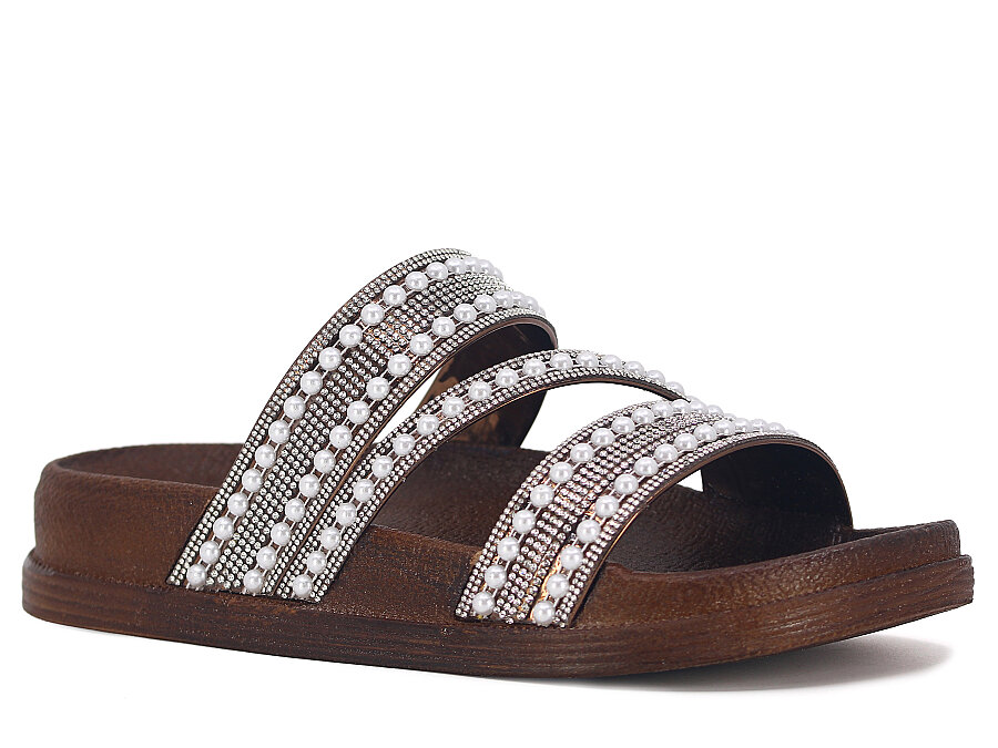 Apella Zenne 487-3 İnci Bantlı Taşlı Günlük Terlik Kahve