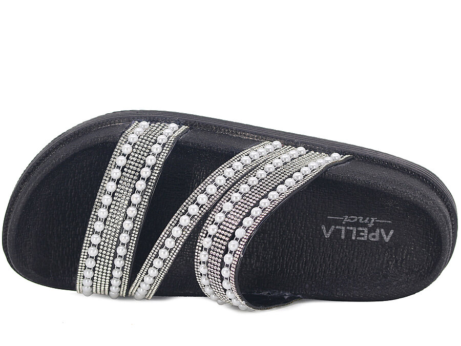 Apella Zenne 487-3 İnci Bantlı Taşlı Günlük Terlik Siyah