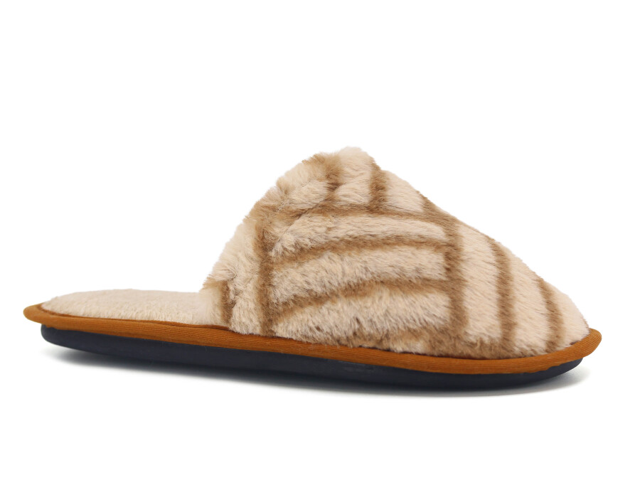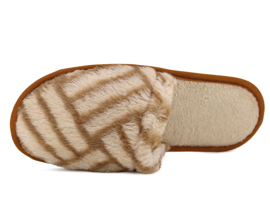 Auris Zenne Tavşan Tüylü Ev Terliği Çizgili Kahve