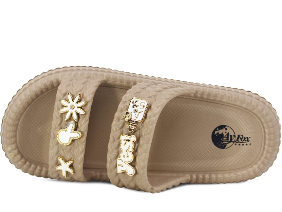 Ayfox Zenne Naz Taşlı Çift Bant Lux Eva Terlik Bej - Ayfox Ayfox Zenne Naz Taşlı Çift Bant Lux Eva Terlik Bej - Ayfox (1)