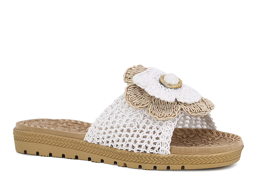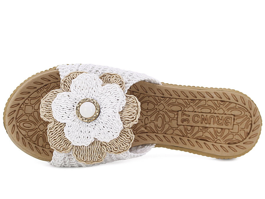 Bruno Zenne 2026 Çiçek Dantelli İncili Burnu Açık Günlük Terlik Beyaz