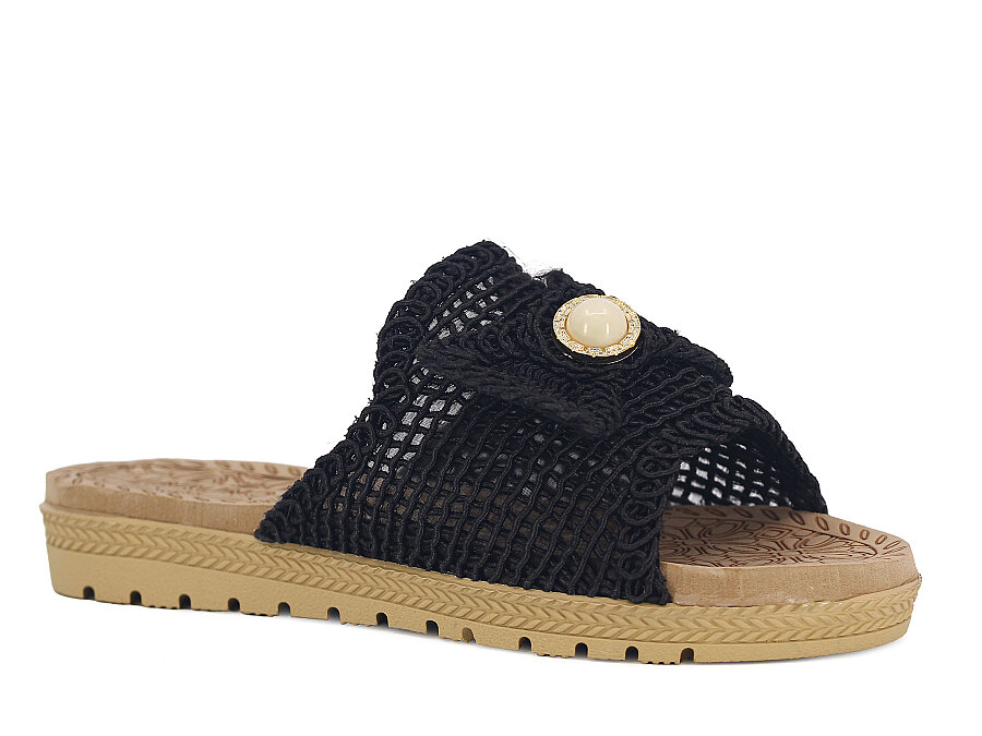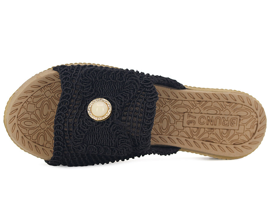Bruno Zenne 2026 Papyon Dantelli İncili Burnu Açık Günlük Terlik Siyah
