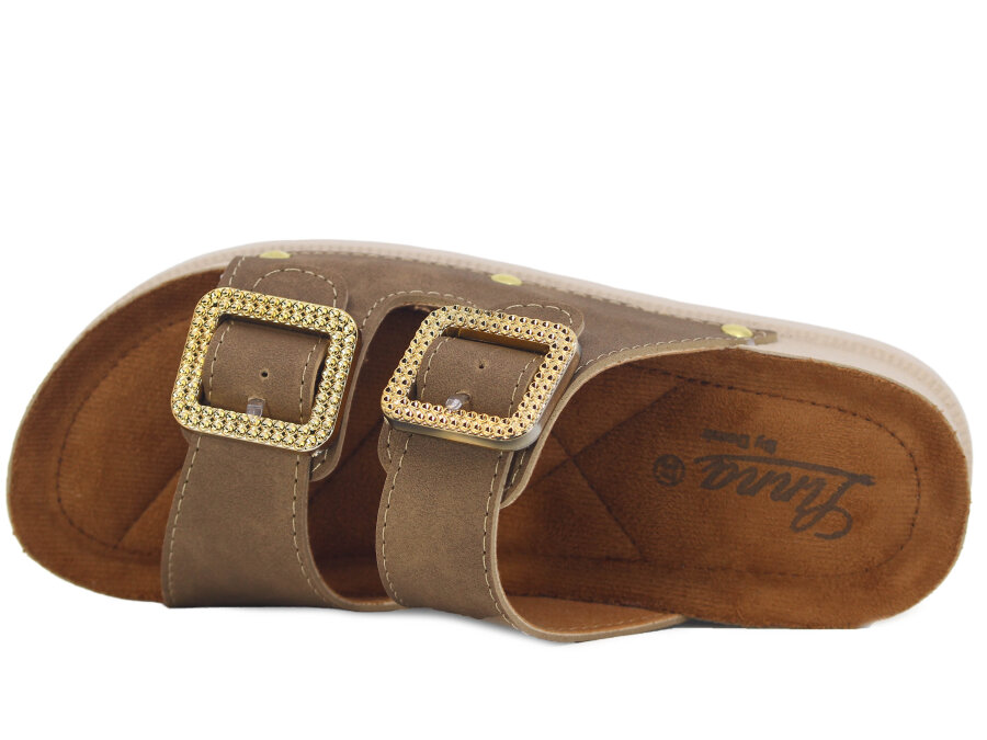 Demir Zenne Linna 0280 Çift Toka Pedli Günlük Terlik Vizon