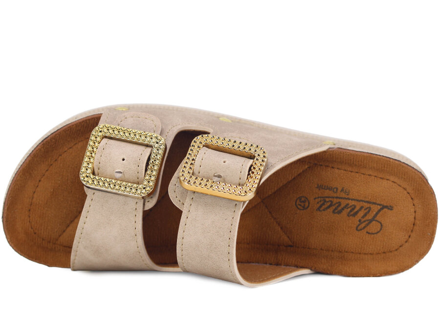 Demir Zenne Linna 0280 Çift Toka Pedli Günlük Terlik Bej