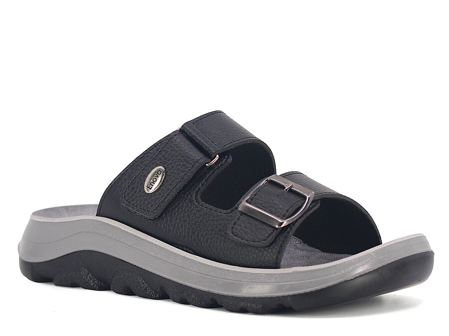 Enova Merdane M09-0203 Monta Çift Toka Kutulu Günlük Terlik Siyah