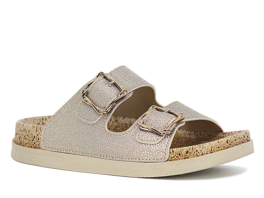 Foxter Zenne Z-24005 Çift Toka Simli Kutulu Günlük Terlik Altın