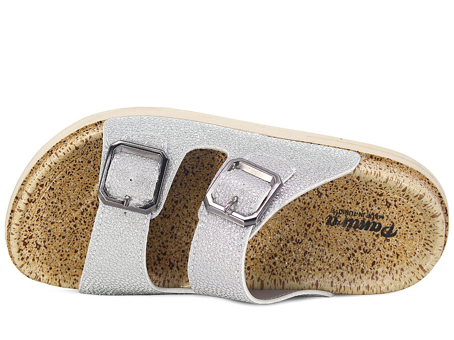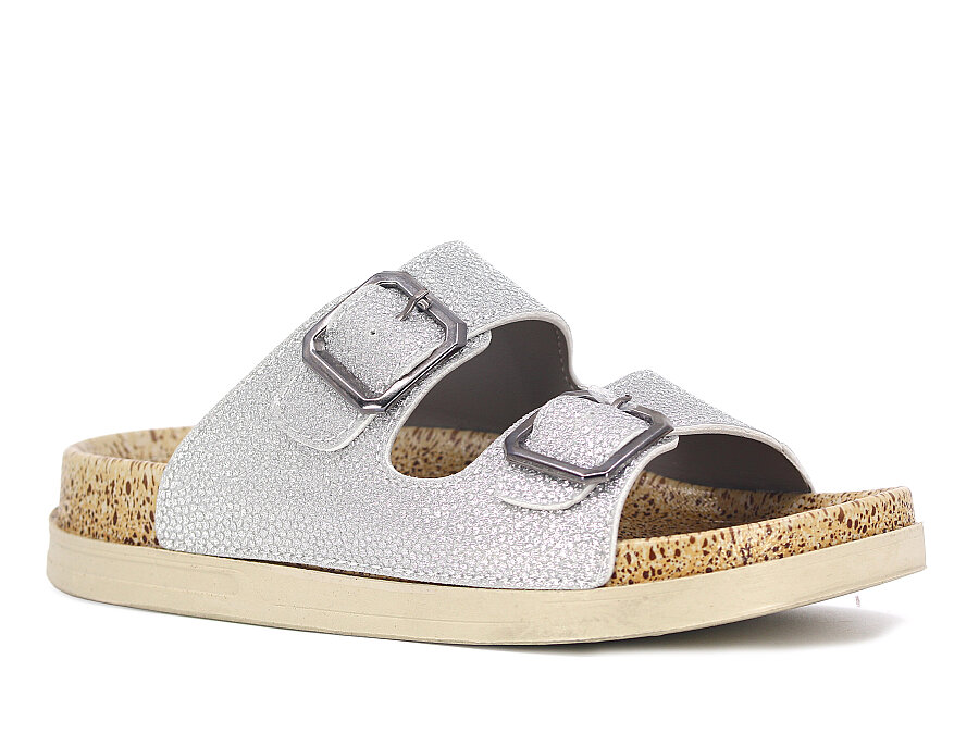Foxter Zenne Z-24005 Çift Toka Simli Kutulu Günlük Terlik Gümüş