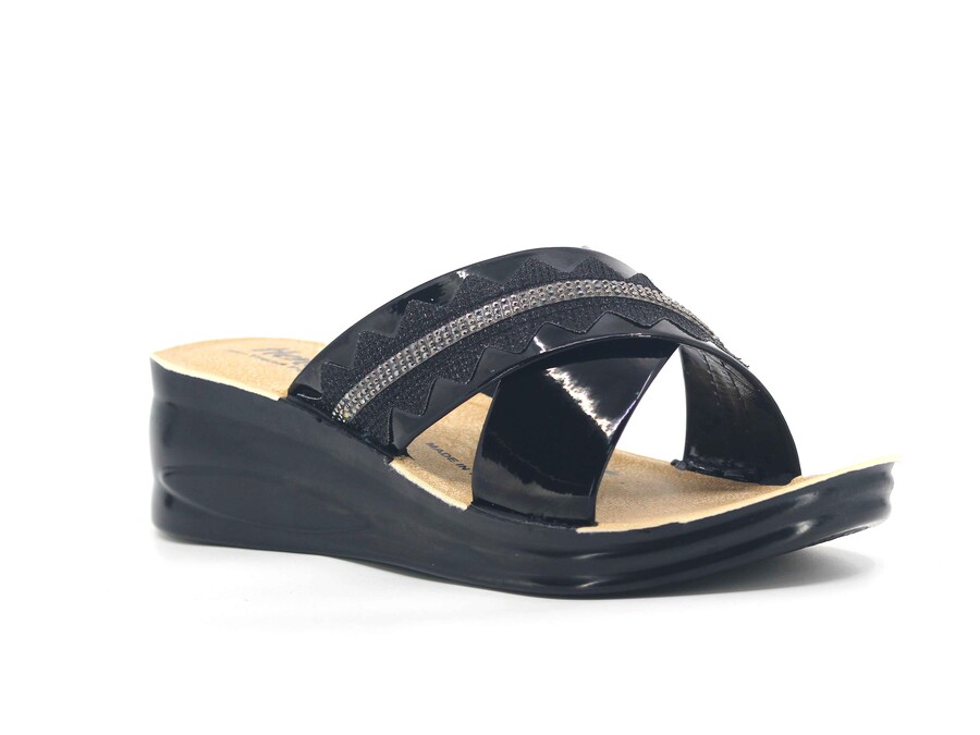 Henedi Zenne 2554 Çapraz Taşlı Ayna Bantlı Kutulu Günlük Terlik Siyah