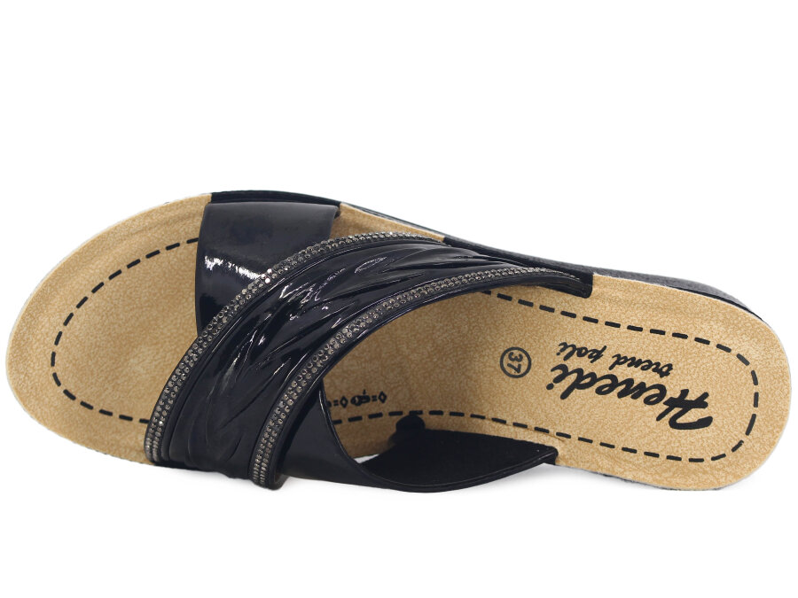 Henedi Zenne Z-3444 Çapraz Taşlı Ayna Bantlı Kutulu Günlük Terlik Siyah