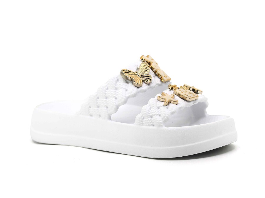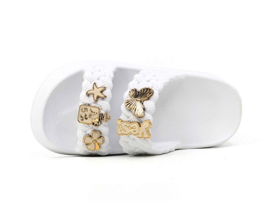 Lotus Filet Eva-33 Çift Bant Örgülü Taşlı Lux Eva Terlik Beyaz