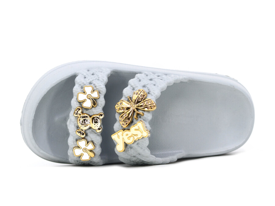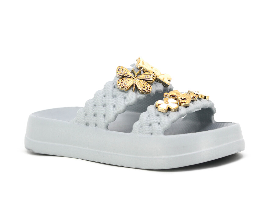 Lotus Filet Eva-33 Çift Bant Örgülü Taşlı Lux Eva Terlik Gri