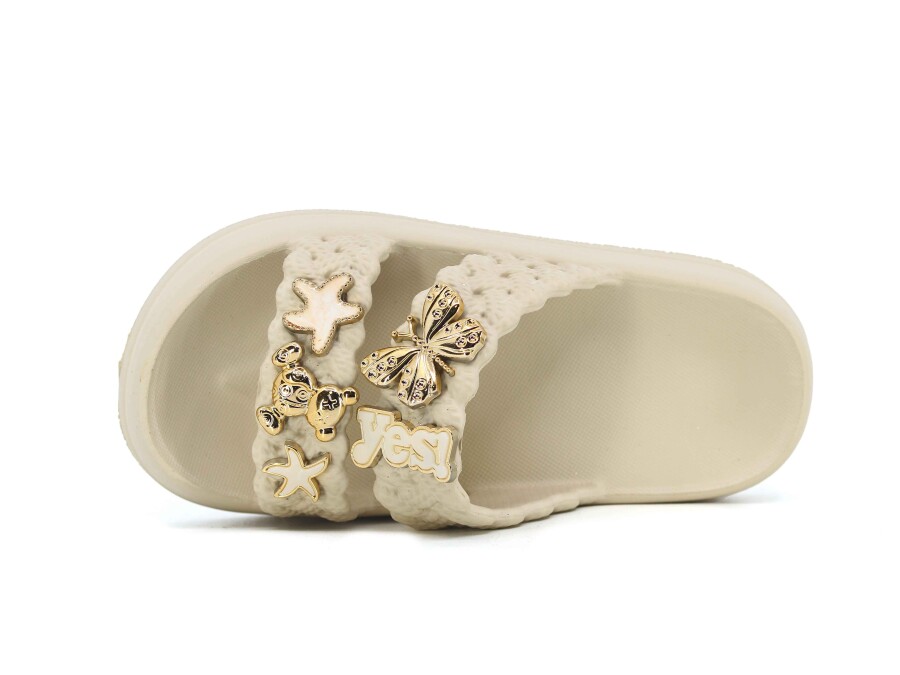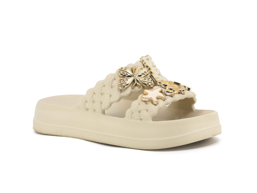 Lotus Filet Eva-33 Çift Bant Örgülü Taşlı Lux Eva Terlik Krem