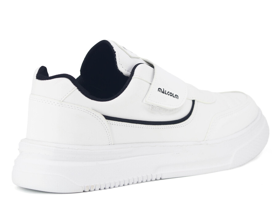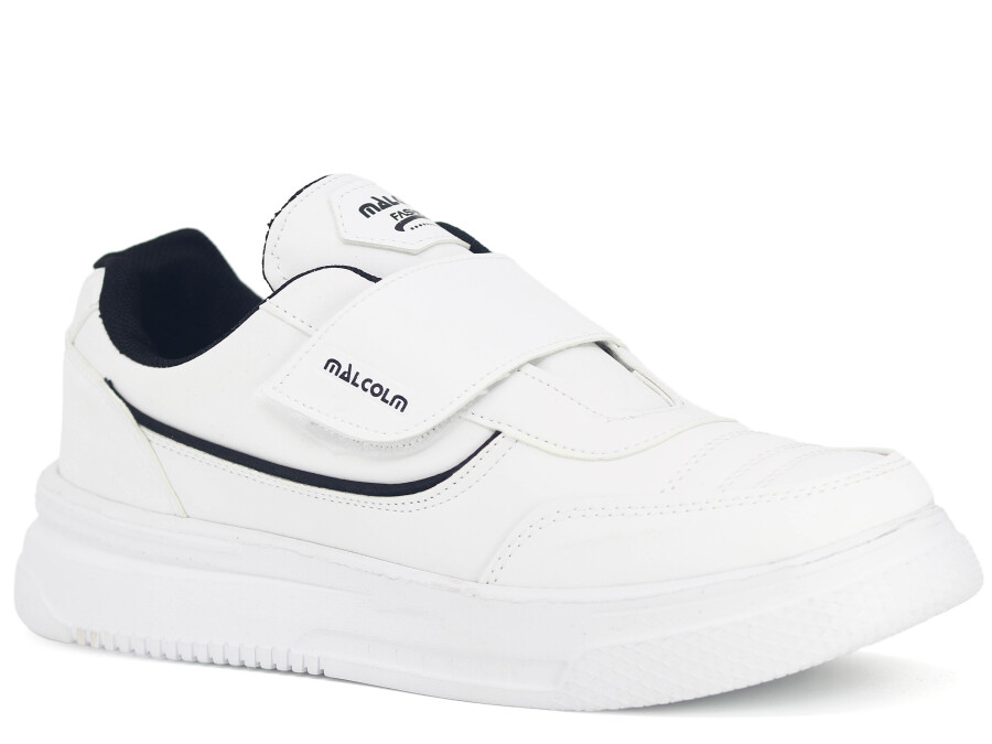 Malcolm Merdane 1091 Cırtlı Cilt Spor Ayakkabı Beyaz - Siyah