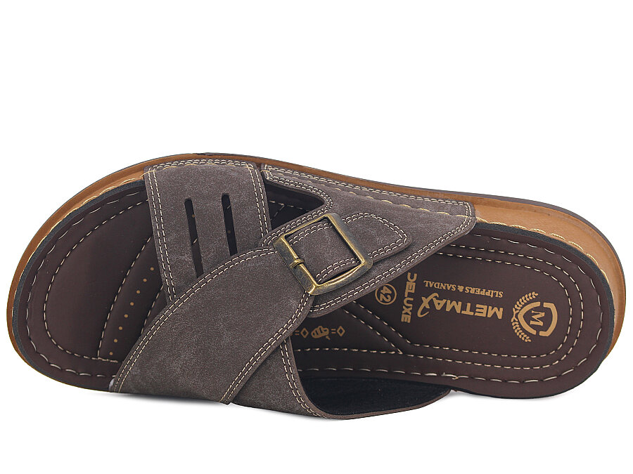 Metmax Merdane 306 Deluxe Çapraz Kutulu Günlük Terlik Kahve