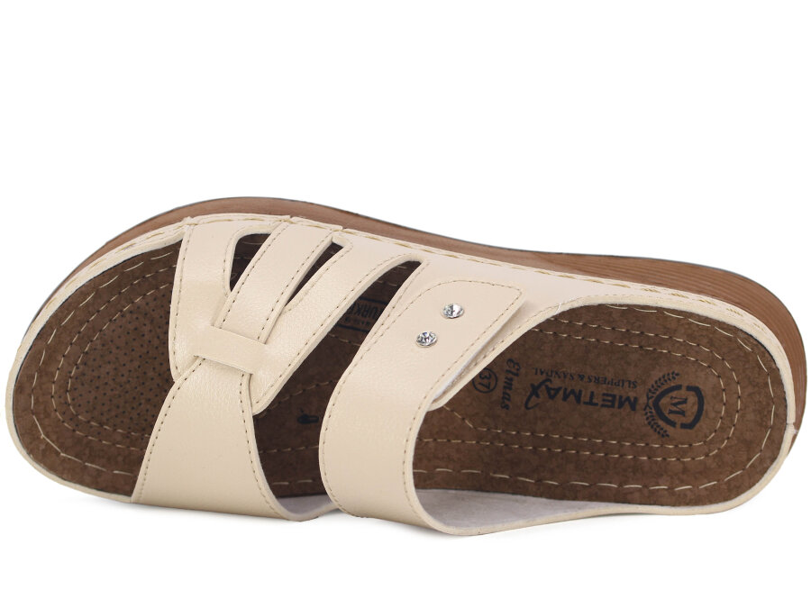 Metmax Zenne 1111 Elmas Cırtlı Taşlı Monta Günlük Terlik Krem