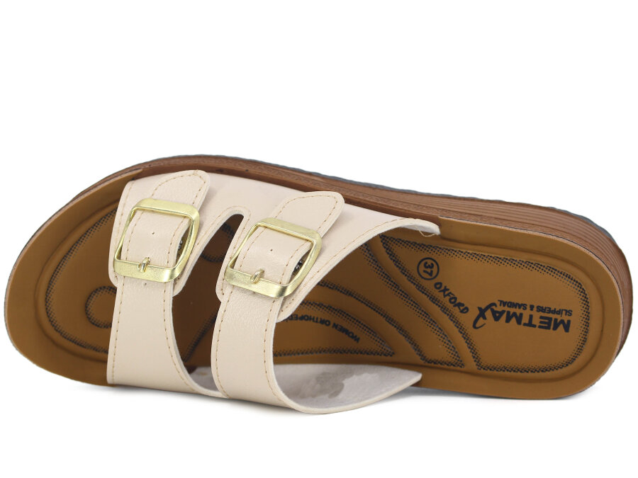 Metmax Zenne 1865 Oxfort Çift Toka Günlük Terlik Krem