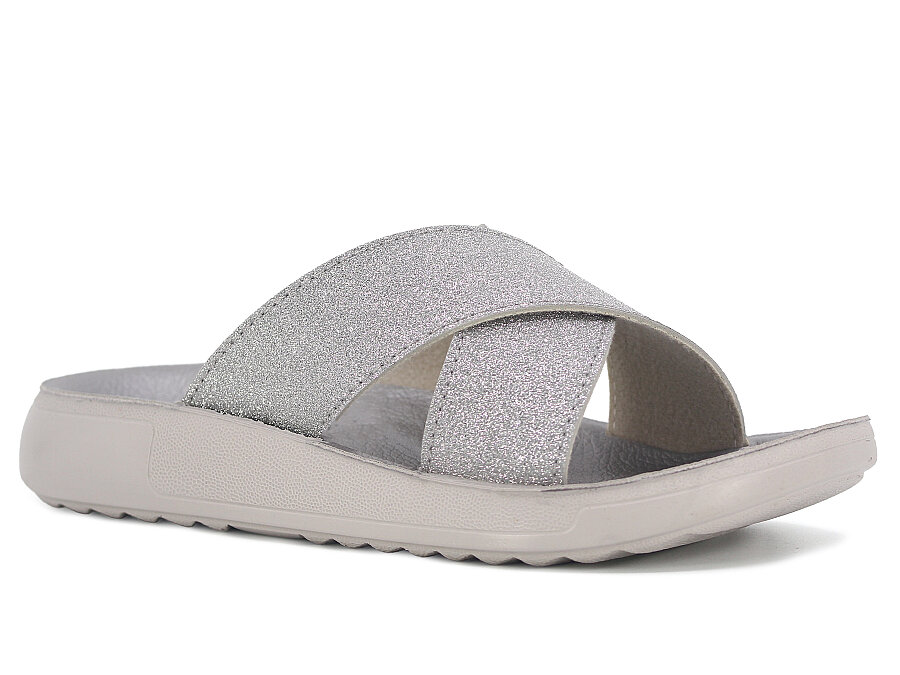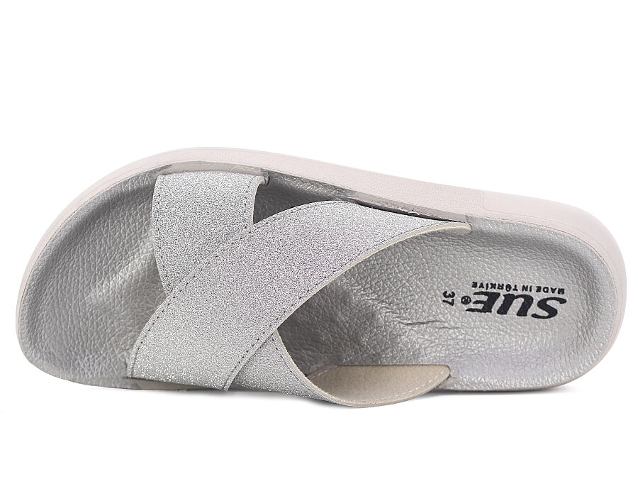 Sue Zenne 1354-Simli Çapraz Kutulu Enj. Günlük Terlik Gümüş
