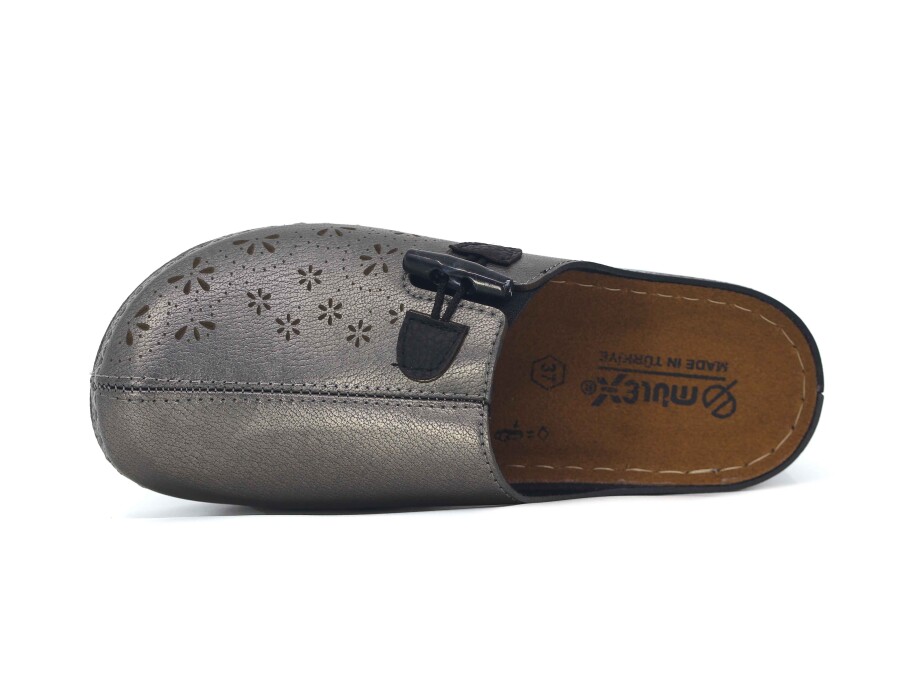Mulex Zenne 2556 Lastikli Tokalı Kışlık Burnu Kapalı Terlik Platin