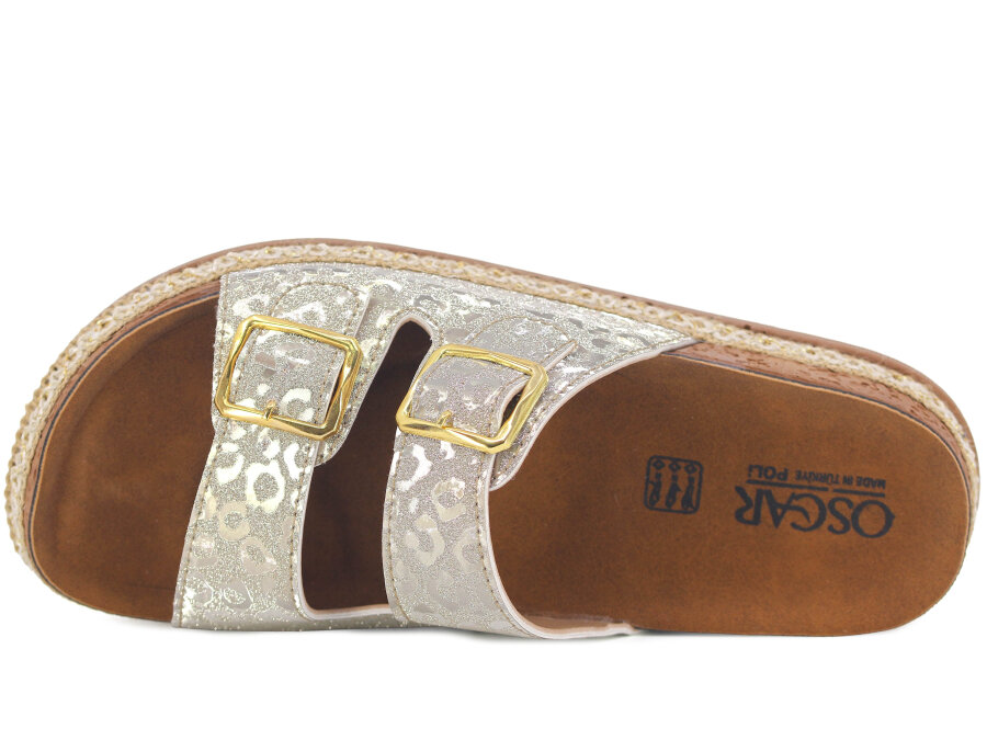 Oscar Zenne Z-456-3 Çift Toka Günlük Terlik Altın
