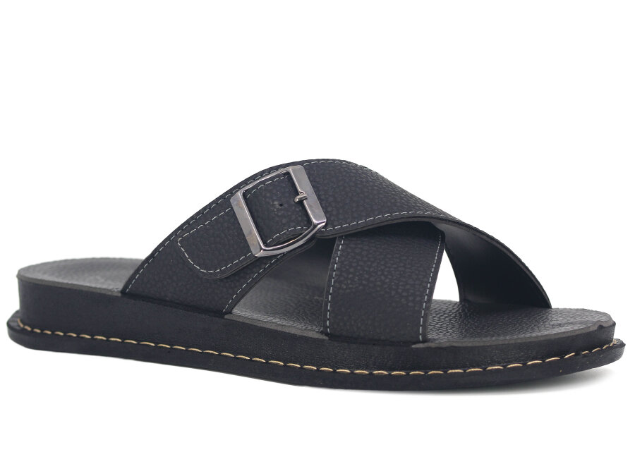 Polen Merdane 1006.M.002 Çapraz Tokalı Günlük Terlik Siyah