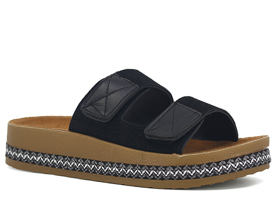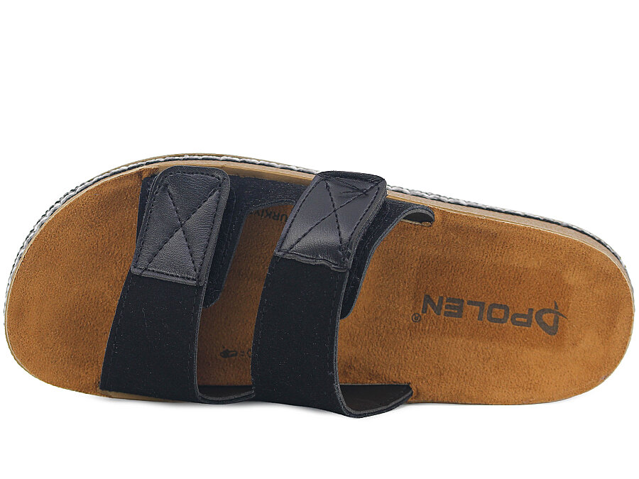 Polen Zenne 1005.Z.003 Çift Bant Cırtlı Günlük Terlik Siyah