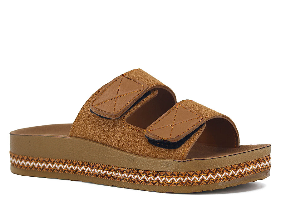 Polen Zenne 1005.Z.003 Çift Bant Cırtlı Günlük Terlik Taba