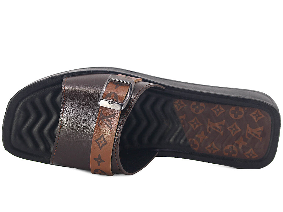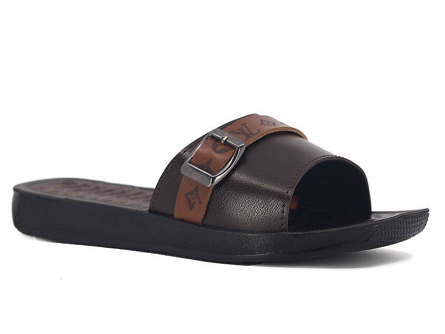 Polex Zenne 16005 Tek Toka Şeritli Köşe Taban Parçalı LV Günlük Terlik Kahve - Taba