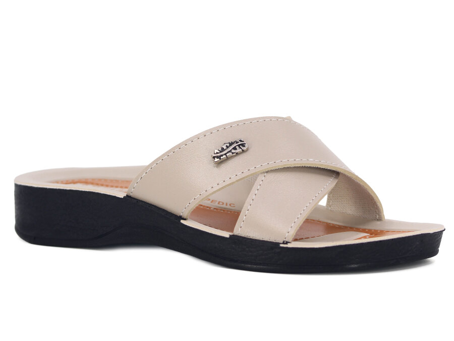 Polex Zenne 5007-C Esem Çapraz Poşetli Günlük Terlik Bej