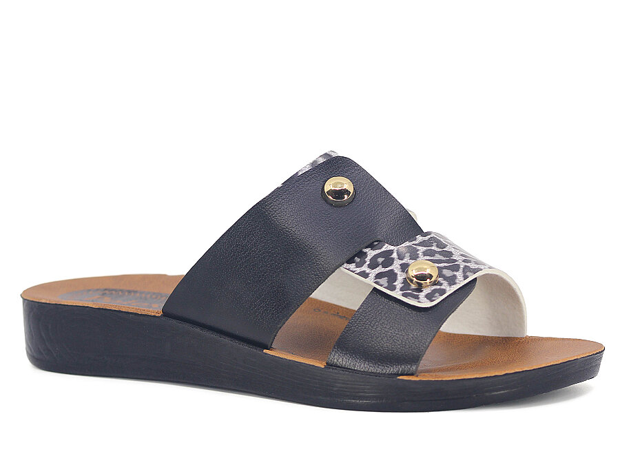 Polex Zenne 5061-C İki İncili Günlük Terlik Siyah - Siyah Leopar