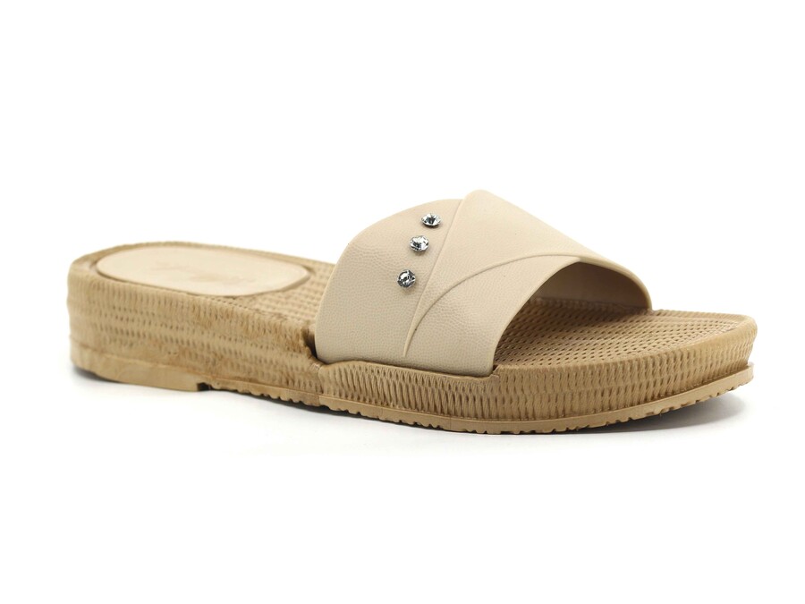 Polialabo Zenne 18033 Taşlı Parçalı Kaydırmaz Terlik Bej