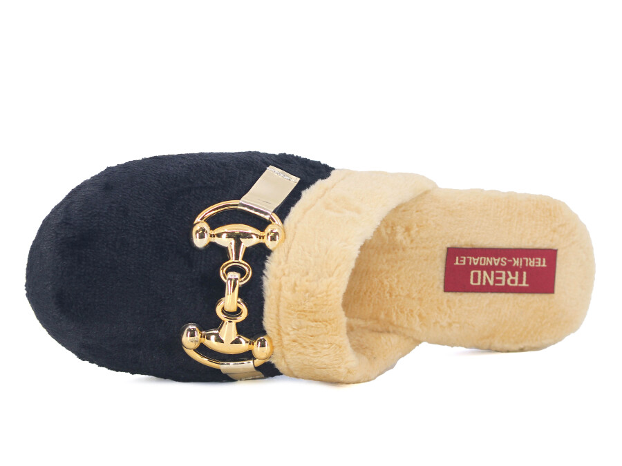 Rose Zenne Ay Tokalı Peluşlu Ev Terliği Siyah