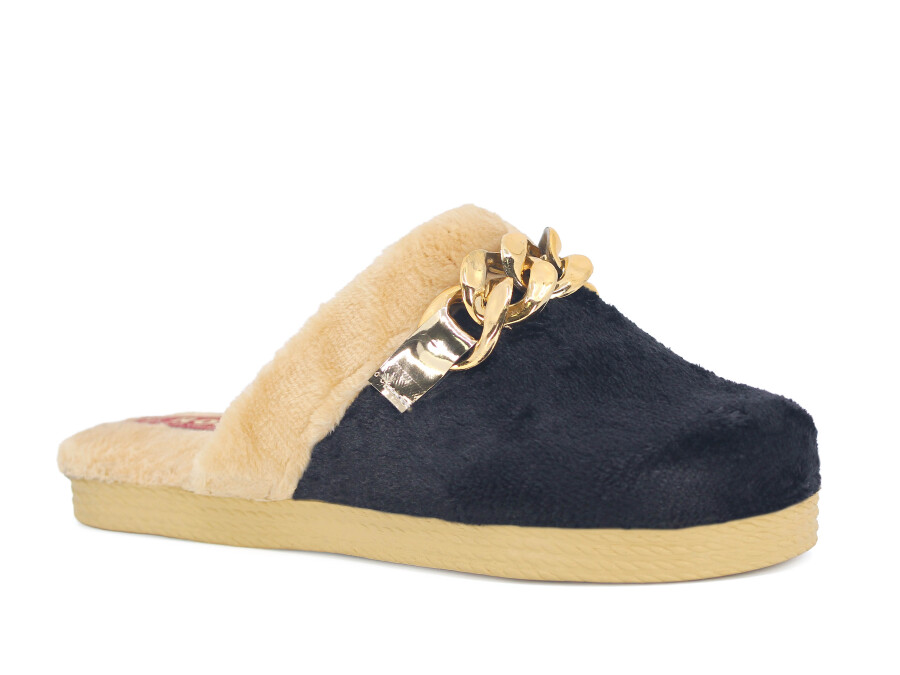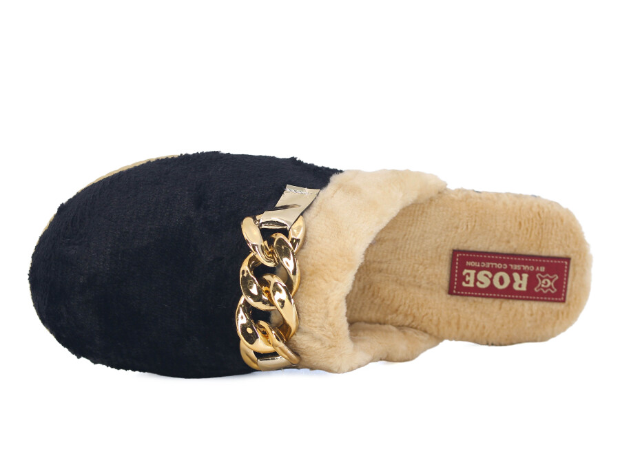 Rose Zenne Büyük Zincir Tokalı Peluşlu Ev Terliği Siyah