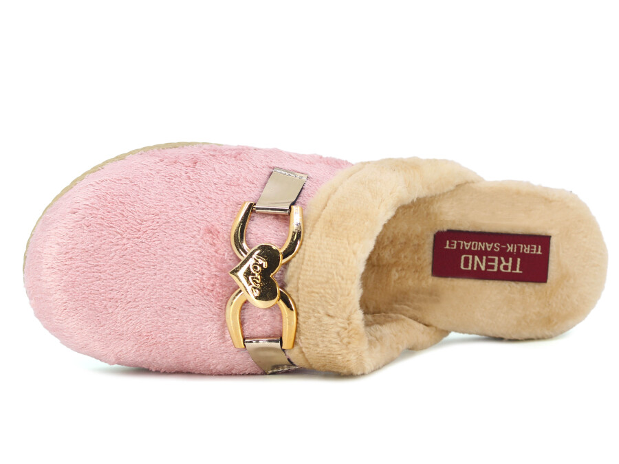 Toptan Rose Zenne Kalpli Tokalı Peluşlu Ev Terliği