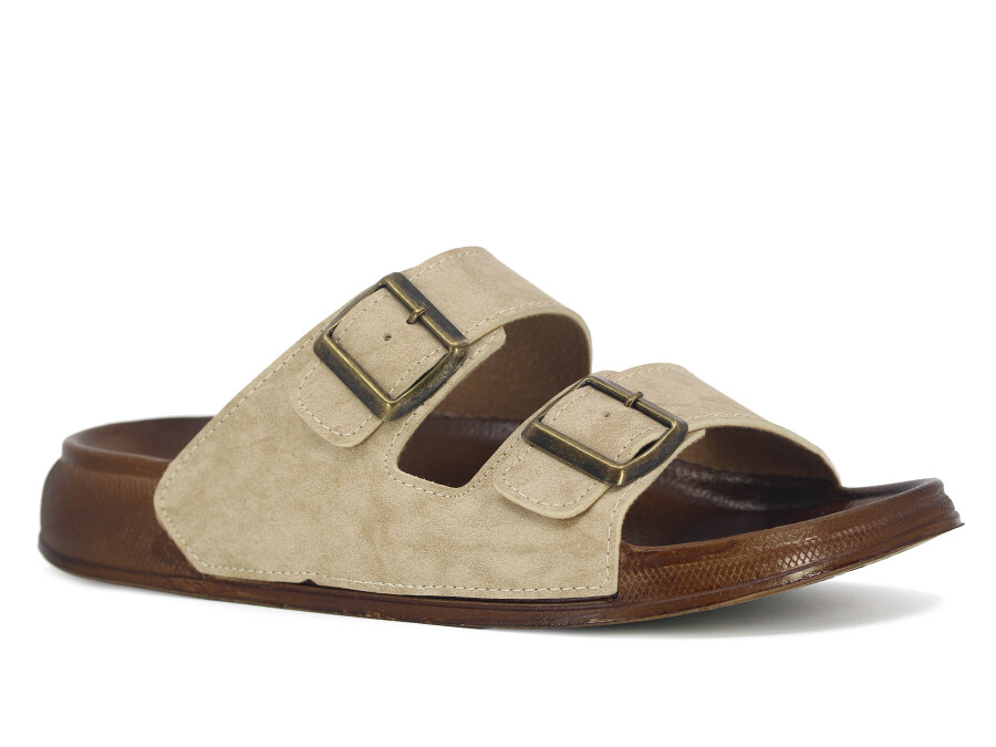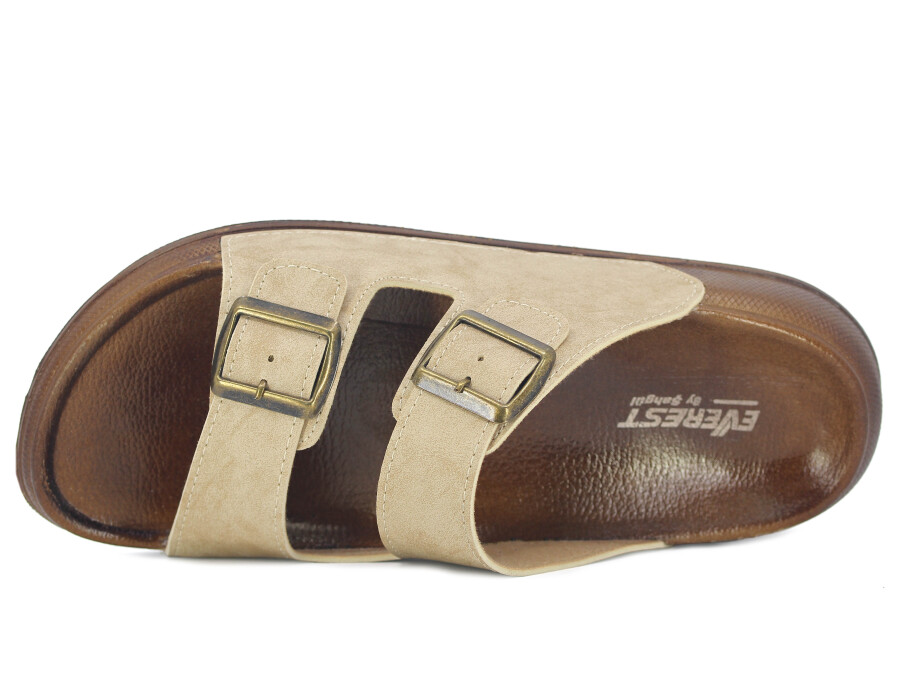 Şahgül Merdane 6401 Çift Toka Comfort Kutulu Günlük Terlik Bej