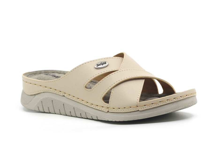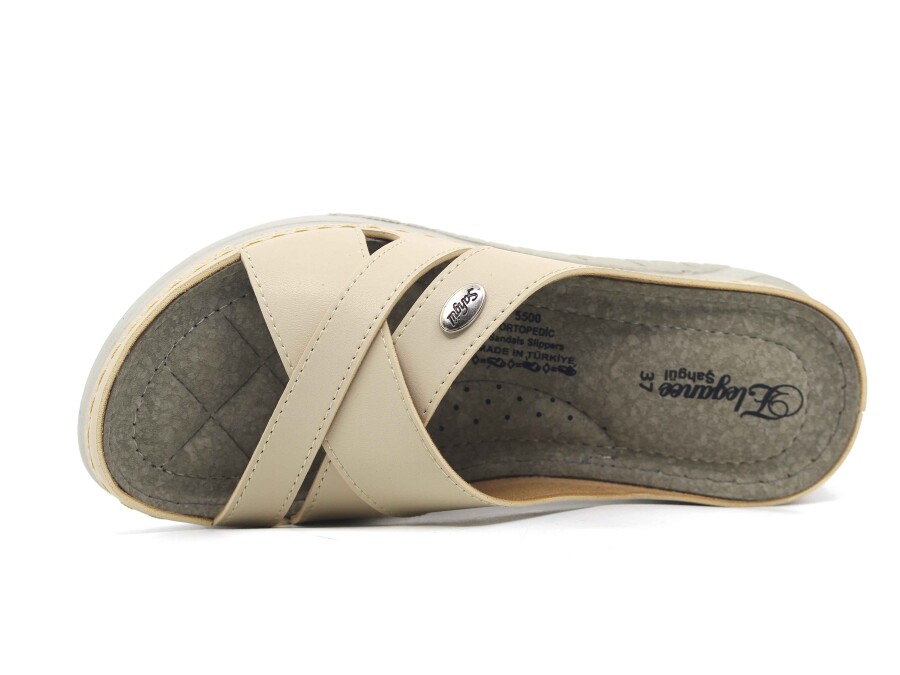 Şahgül Zenne 5502 Çapraz Geçmeli Monta Günlük Terlik Bej