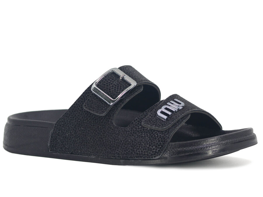 Şahgül Zenne 7326 Monta Çift Bant Tokalı Kutulu Günlük Terlik Siyah