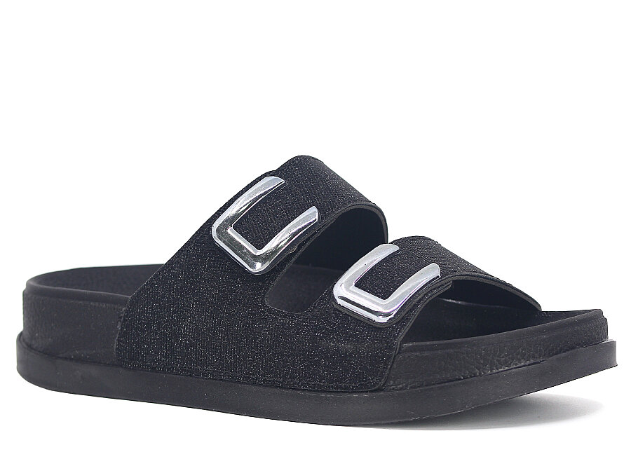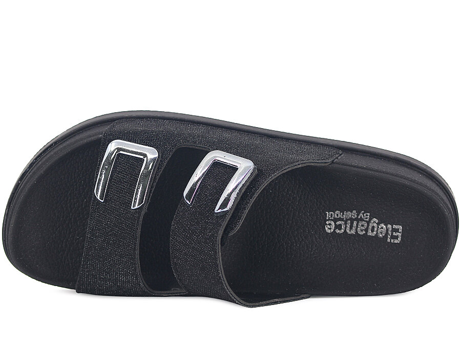 Şahgül Zenne 7528 Çift Toka Simli Monta Kutulu Günlük Terlik Siyah
