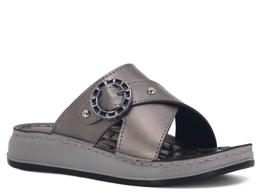Serra Zenne 8002-1 Simli Çift Toka Dikişli Kutulu Günlük Terlik Platin - Serra Serra Zenne 8002-1 Simli Çift Toka Dikişli Kutulu Günlük Terlik Platin - Serra (1)