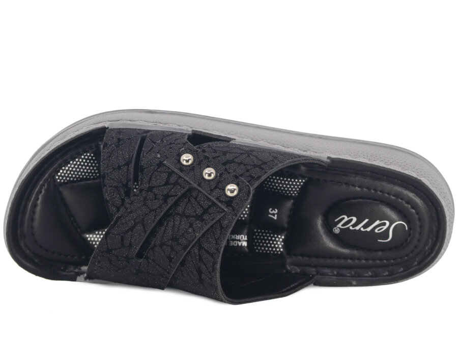 Serra Zenne 7005-1 Simli Çapraz Kutulu Günlük Terlik Siyah