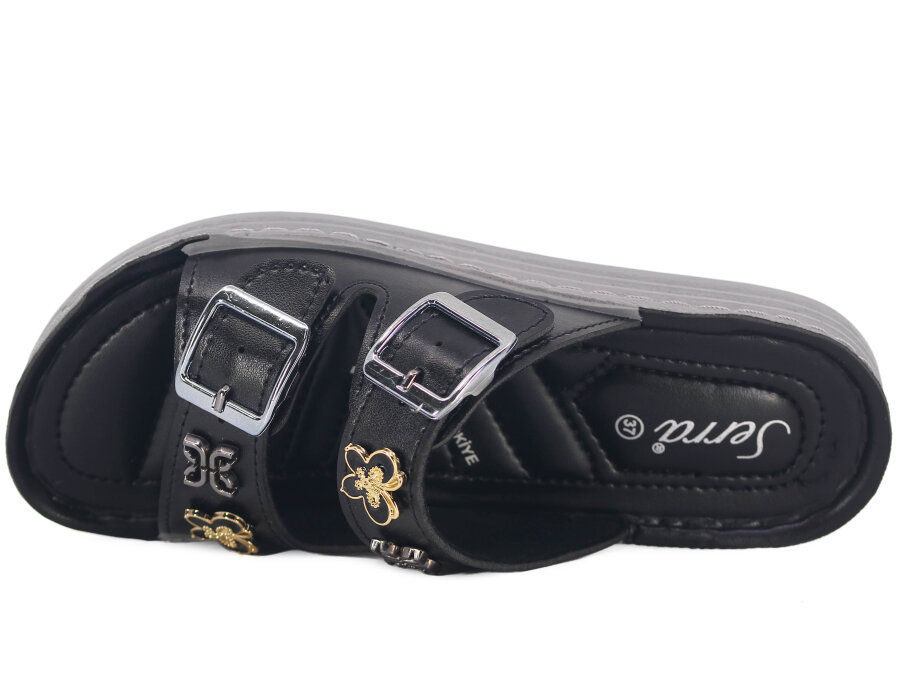 Resimdeki Toptan Serra Zenne 715 Çift Toka Taşlı Enj. Kutulu Günlük Terlik ürünü Black,Cream,Crème,Duplatine,Krem,Noiredel`Arbre,Platin,Platinum,Siyah,Standart,крем,платина,ствндартный,черный renk olarak gönderilecektir.