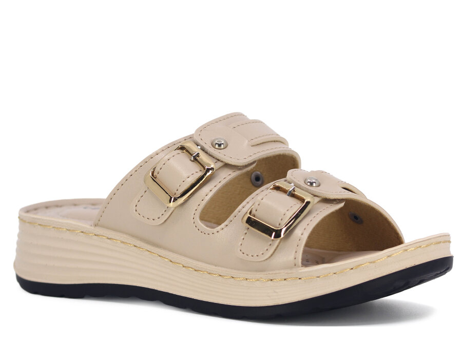 Serra Zenne 8003 Çift Toka Dikişli Kutulu Günlük Terlik Krem - Serra Serra Zenne 8003 Çift Toka Dikişli Kutulu Günlük Terlik Krem - Serra (1)