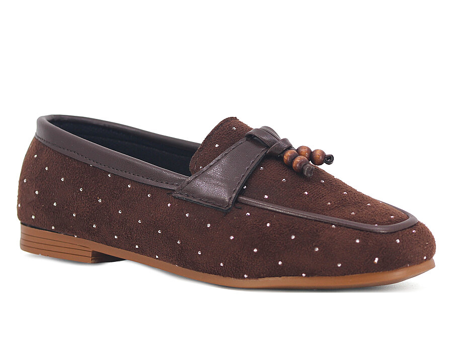 Sıla Zenne A-51 Taşlı Babet Ayakkabı Taşlı Kahve