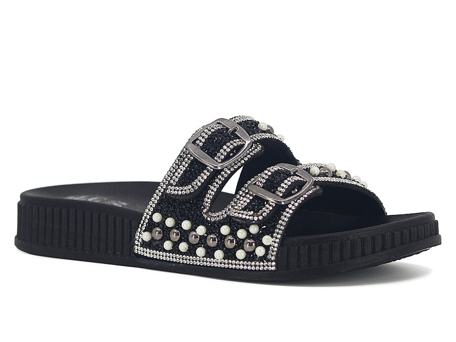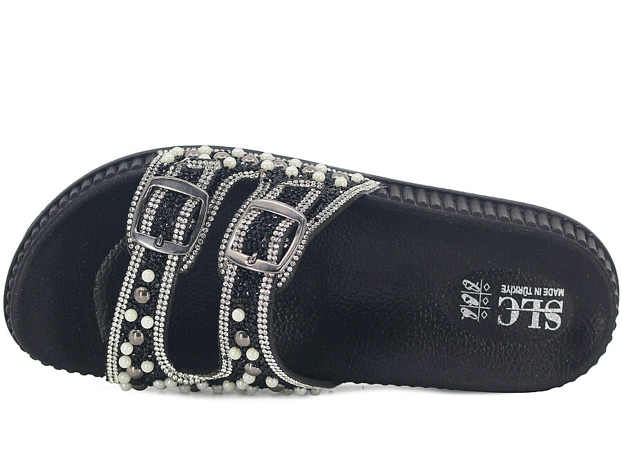 SLC Zenne 8505 Çift Toka İnci Taşlı Kutulu Günlük Terlik Siyah
