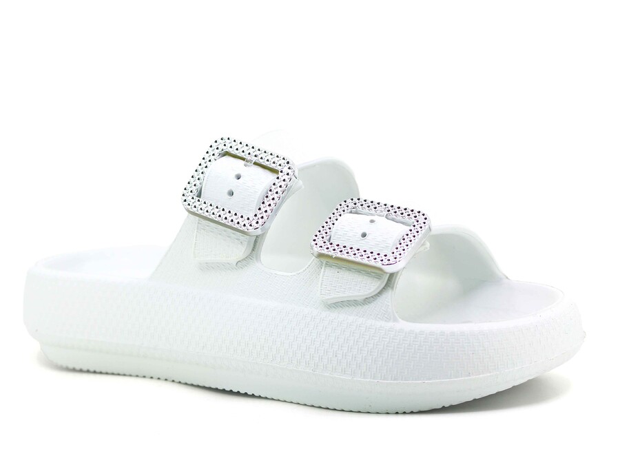 Sonimix Zenne EZ0095.02 Çift Altın Toka Yüksek Kutulu (CEOX) Lux Eva Terlik Beyaz