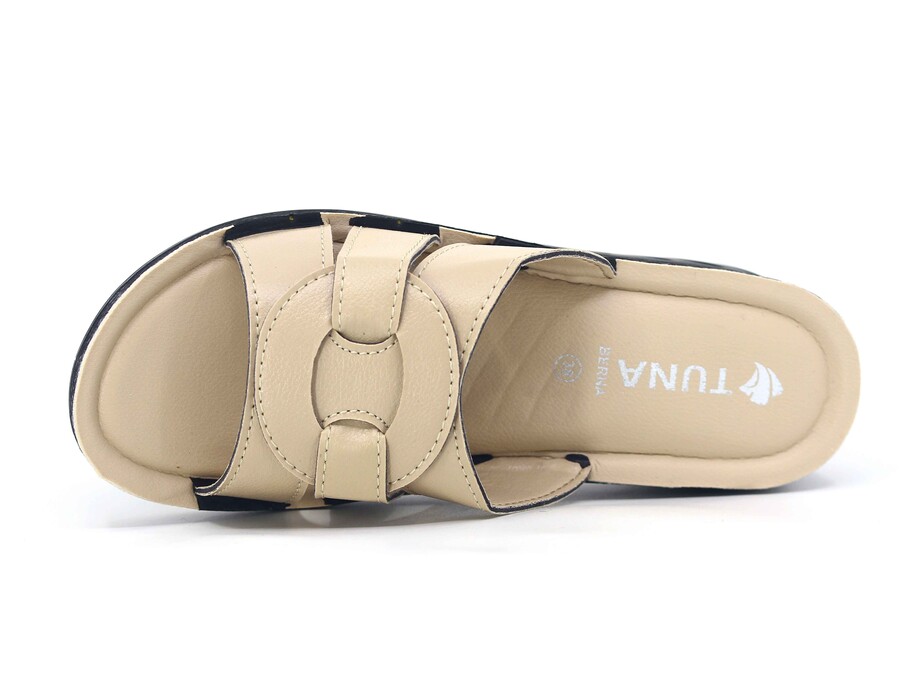 Tuna Zenne Geçmeli Berna Pedli Poşetli Günlük Terlik Bej